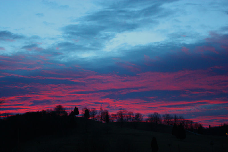 The picture was taken near Daleville this morning. And despite the red sky, it was a shirtsleeve day, very un-Decemberish. You can click on the picture for a larger view.