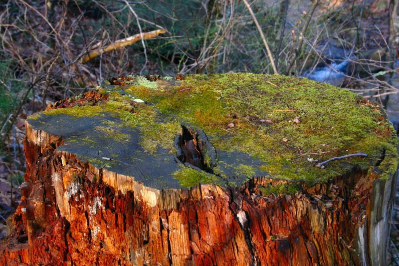 see you prying heavy stones and a moss covered stump,