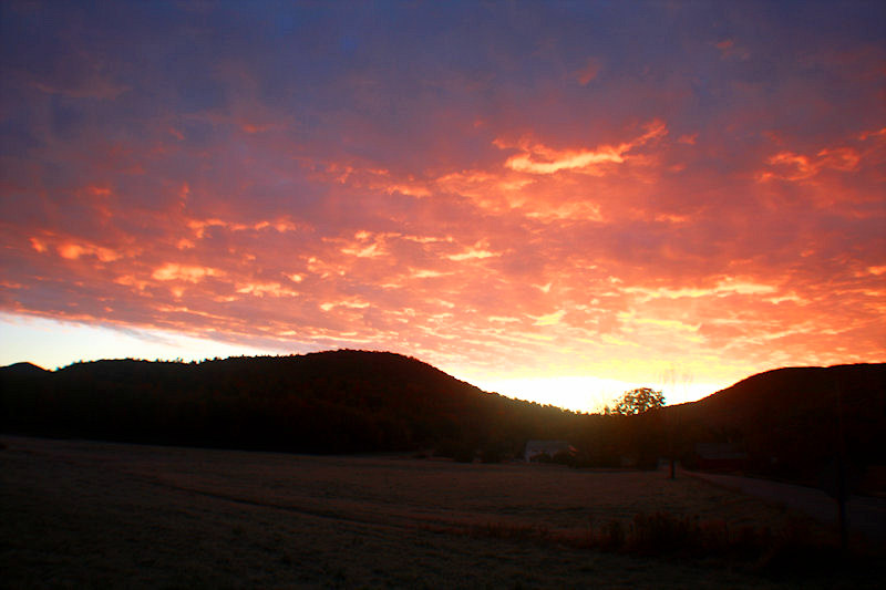 The picture is of the sunrise a day or two ago on the road to Pawlet, VT. You can click on it for a larger version.