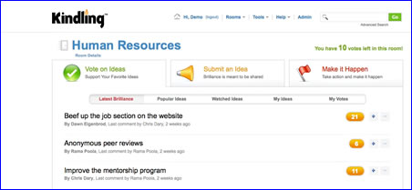 From the review, Kindling is “a simple, web-based idea management system that won’t bog down your employees, then you may want to take a look at Kindling. This application is already making a significant impact on the idea management space with its simple, no-nonsense design – which should be ideal for companies who want an inexpensive way to experiment with this enterprise technology.”