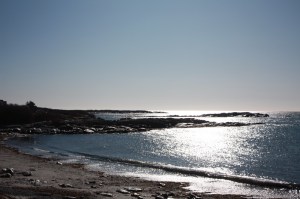 You walk the shoreline of a strange, rocky sea,