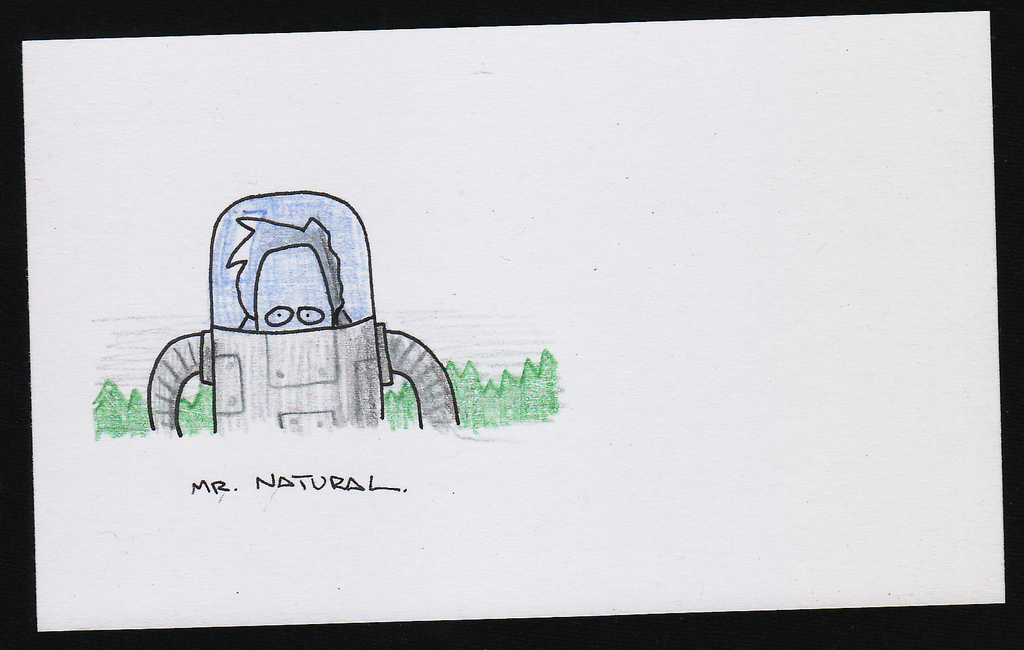 This guy has set out to draw 10,000 drawings on 3×5 cards. As of a few days ago he was at 1,470. He’s a walking talking example of creativity by doing. Are all of them great? Probably not. But many are funny, thought provoking and worth checking up on. And if you really like them, ask him and they are available to buy.