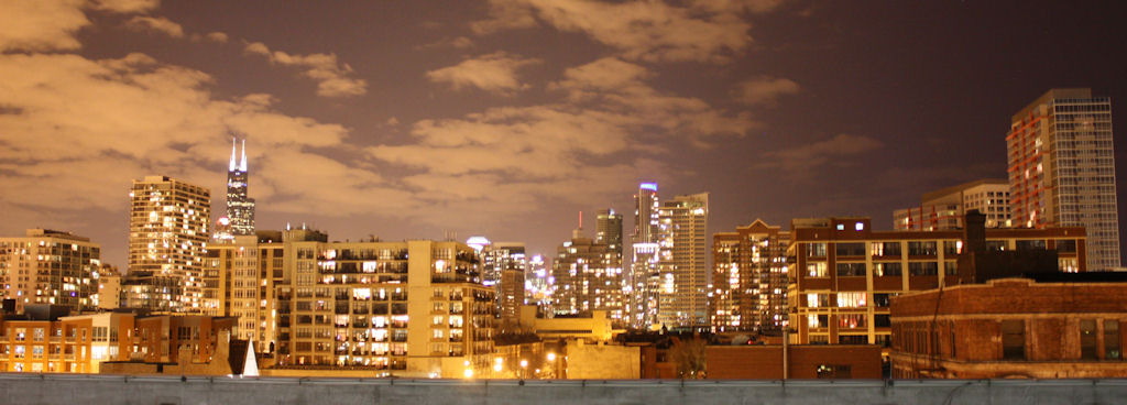 The picture is of the Chicago skyline, taken about 10 at night. You can click on it for a larger version.