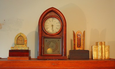 The clock in the picture belonged to my great grandparents, on the Drewry side. It’s a late 19th century gothic mantle clock. From there it was passed down to my grandmother Lassiter, then to my mother, and on my 50th birthday, it was given to me.