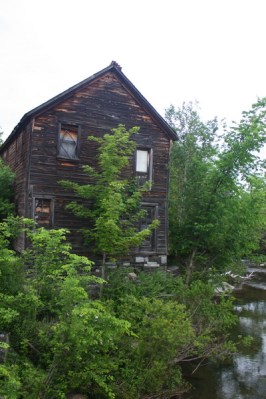Last night, when Drewry and I went to First Fridays at the Pember, a local arts event in nearlby Granville, NY, we also walked to the Slate Museum, where there was more art on display, and I saw this house, perched on the riverside. You can click on it for a larger version.
