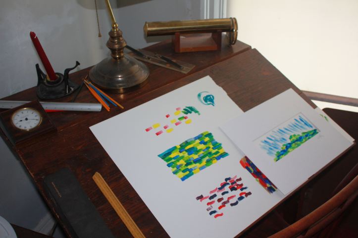 PS – The picture is of my drawing table, taken just this morning. You can click on it for a larger version.