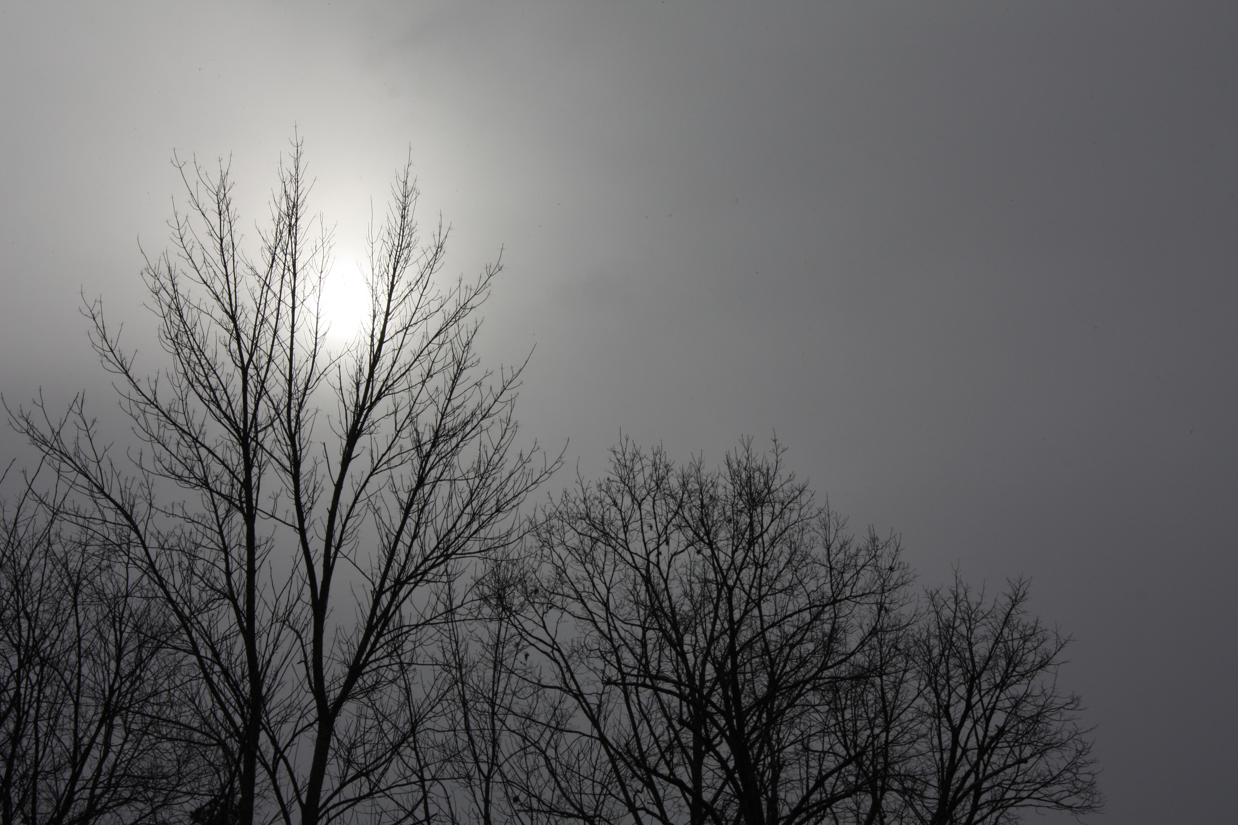 The picture is the last of three silhouette photographs I took a couple of weeks ago in the midst of snow and fog. You can click on it for a larger version.