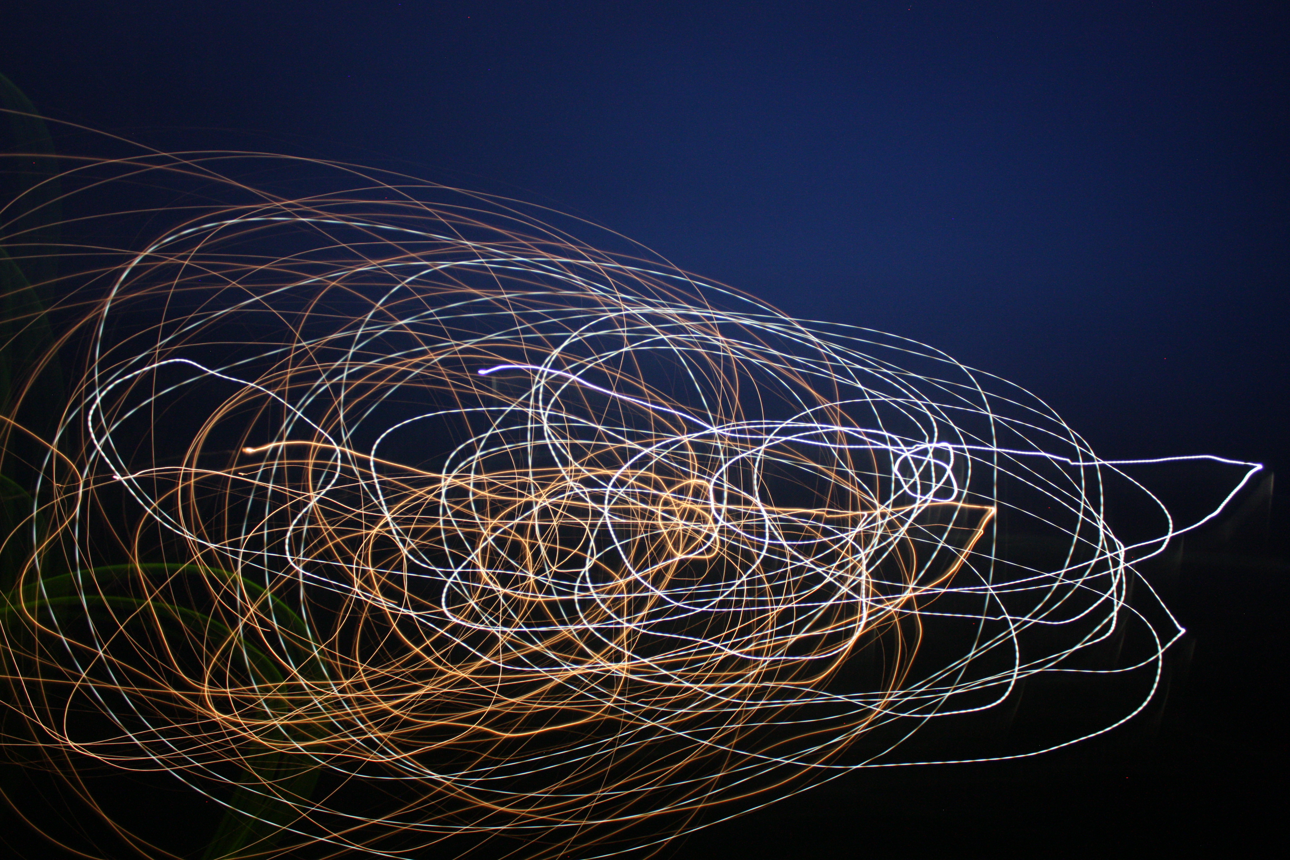 This picture is a beautiful failure. I was photographing a light in a distant field and had the wrong setting on the camera. Suddenly I realized it was taking a time exposure, not a regular shot. So, for fun, I waved the camera around and around, Spirograph style.