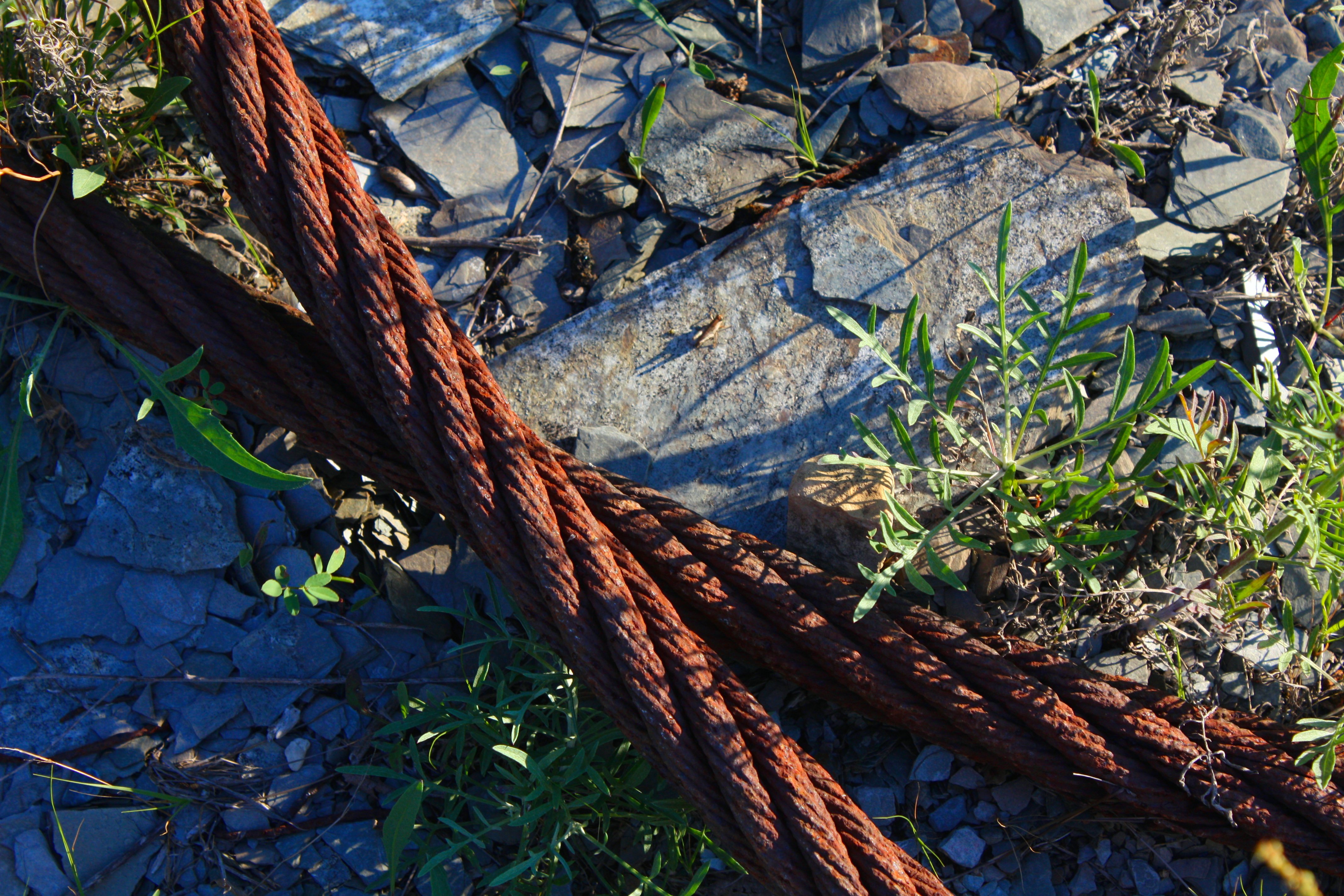 The cables are thick, rusted