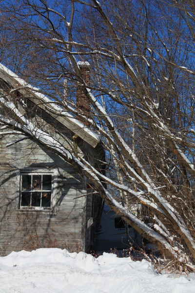paint stripped to grey clapboards.