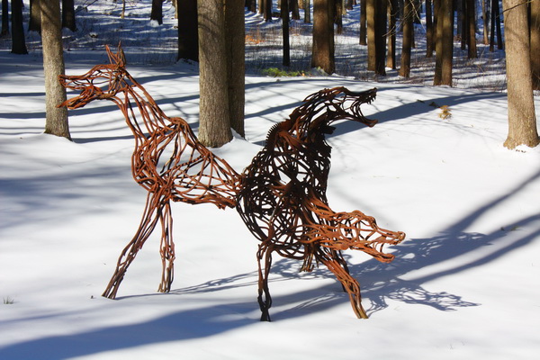 The picture is of an outdoor sculpture on the side of the road that runs to the Southern Vermont Arts Center in Manchester, Vermont. I’ve passed it now and then, always slowing down, sometimes stopping to look closer at it, for the past year or so, sure that somewhere there was a poem in it.