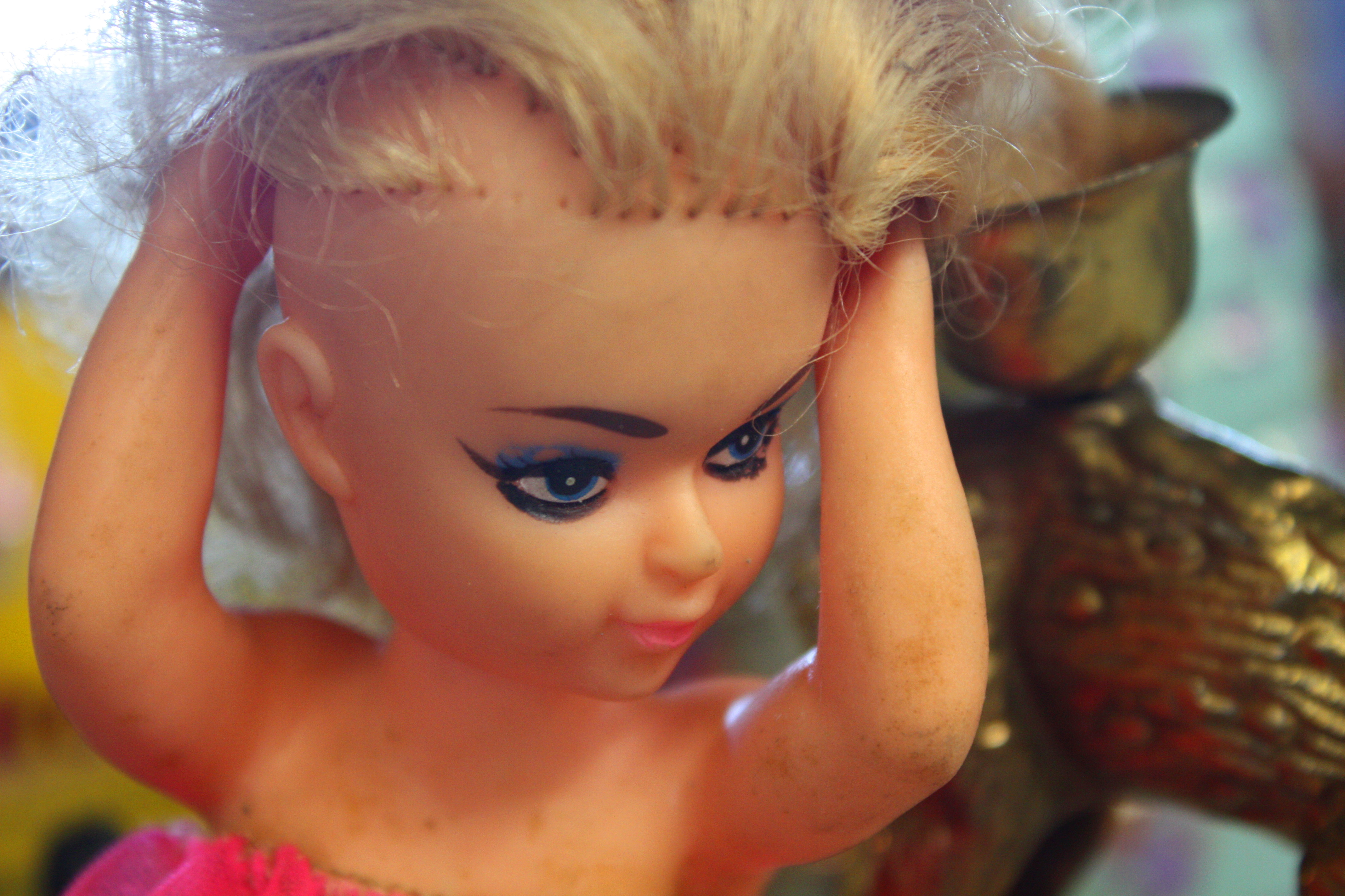 I have carried around this picture for a year. It was taken at an antique fair in Greenwich, NY and the oddness of a tiny baby doll looking, well… so disturbing – I knew there was a poem in it. This morning….. it came to me.