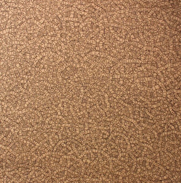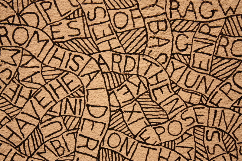 Take a look at the detail below. I found myself tracing words and phrases, in a giant (these were big pictures) piece of poetic art. And then my quirky humor kicked in and I wondered, if he did 129 or more of these, how long did it take him?