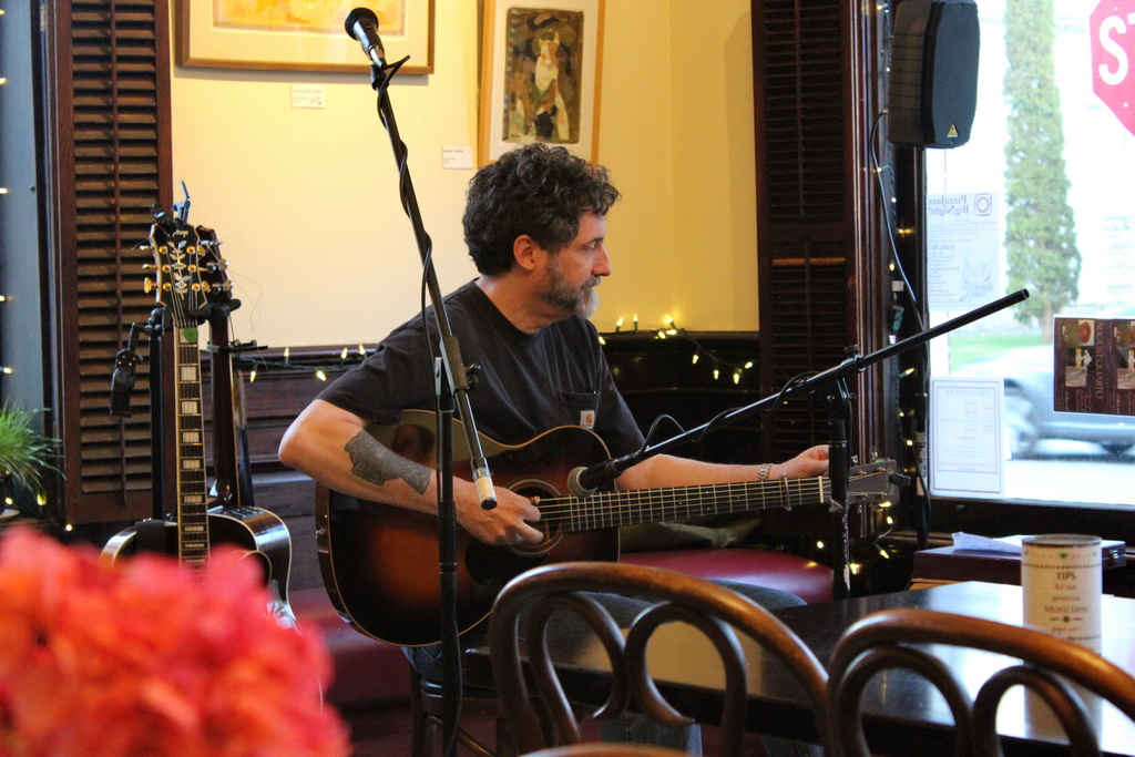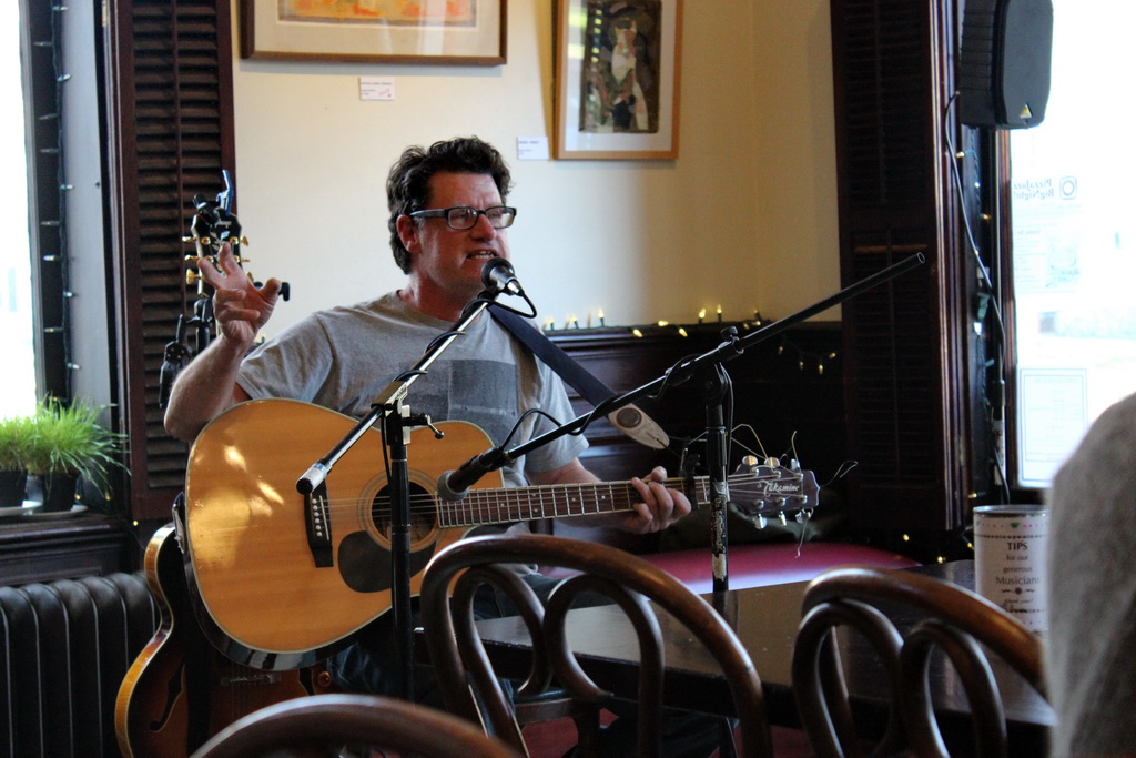 Peter Main is evidently the magic man of local music. He’s in several bands, and according to Dana, also writes about a song a minute. He sang three for us, and he had me hooked from the first when he did a Lou Reed kind of ballad (assuming Lou Reed could stay on key.). Quality stuff.