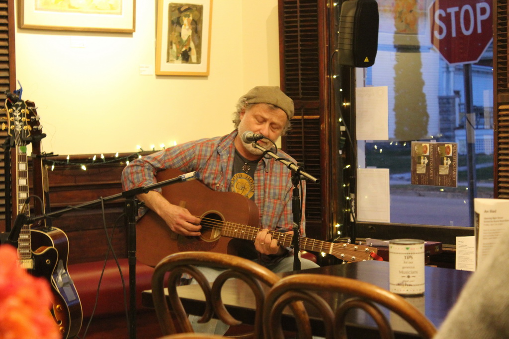 It was, however, a delightful evening. Scott Carrino, owner of the Round House Cafe had invited me to be part of the Round House’s Open Mic night, an irregular gathering of musicians and others.