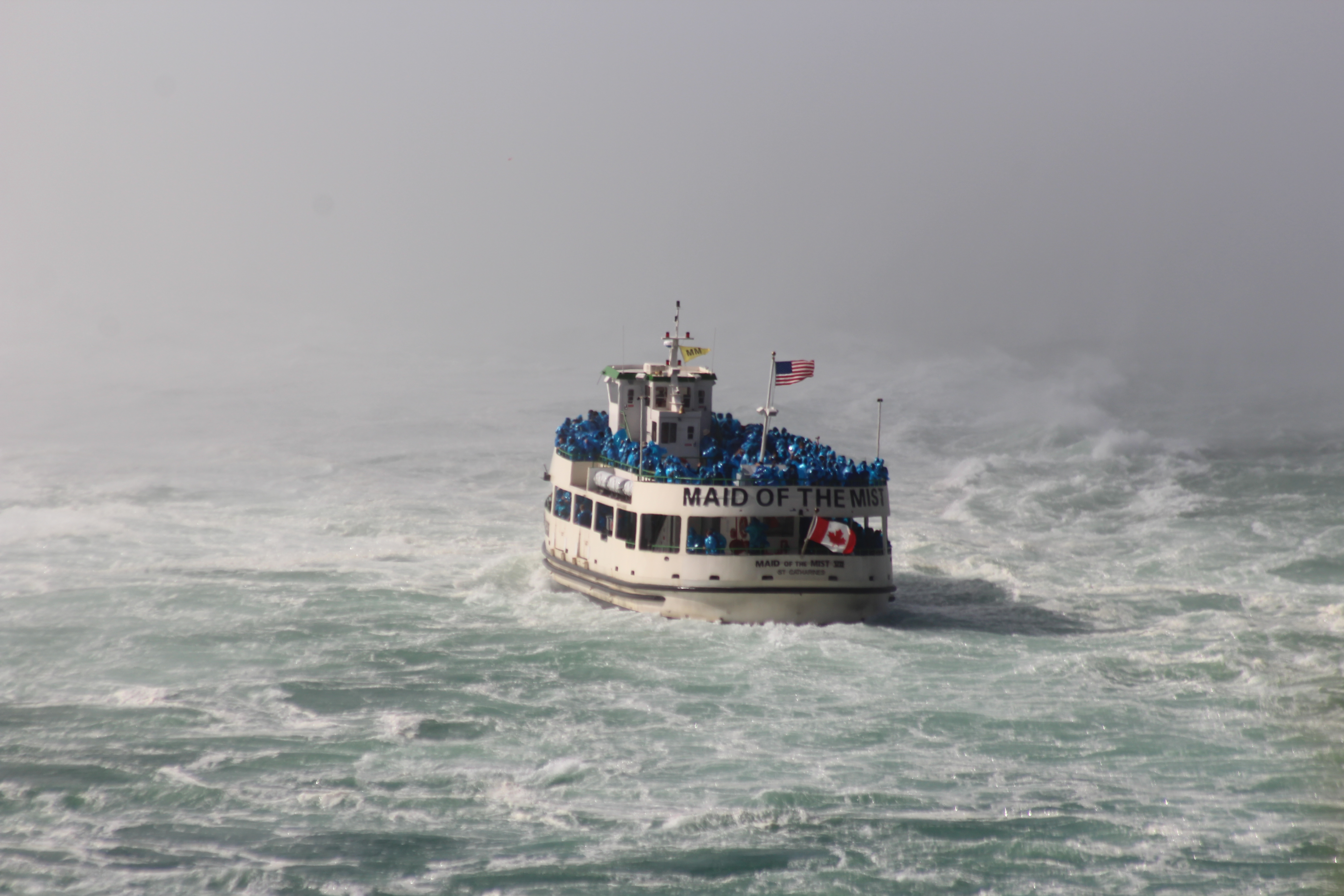 The definition of “awe” “is an overwhelming feeling of reverence, admiration, wonder, fear, etc., produced by that which is grand, sublime, extremely powerful,” And that is what you feel, standing at the front of this boat that seemed so big at the dock downstream, and suddenly seemed so impossibly tiny and fragile confronted with walls of water nearly two hundred feet high, the roar of over 3,000 tons of water each minute roaring. Suddenly, your whole perspective of your own importance, and the vastness of the miracle of creation and nature shifts. I could have stayed there at the front of that boat, surrounded by the Falls, feeling wonderfully small, for hours.