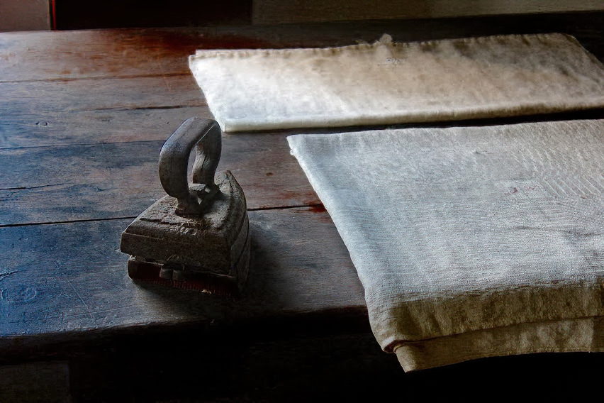 Still life. An ancient iron. Linens.
