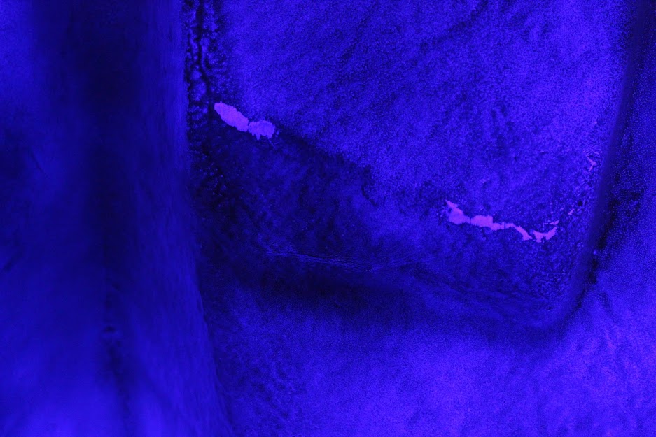 swathed in blue over plaster and styrofoam,