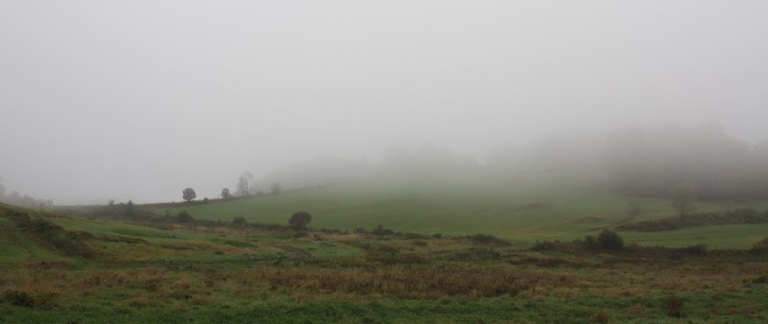 The landscape fades into fog.