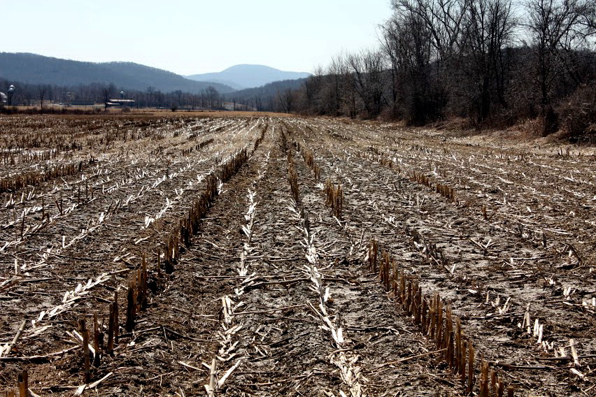 You drive past the cornfields, recently harvested,