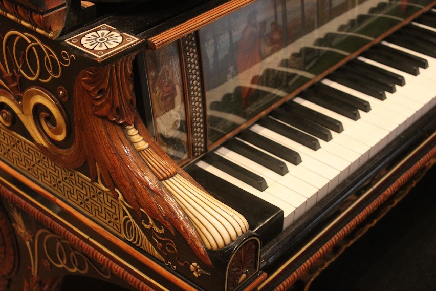My mother did teach piano in my home when I was growing up. She had a baby grand, not nearly as ornate as the one in the picture, which lives in the Clark Museum in North Adams, Mass. I didn’t learn it from her, learning music only when I was 50 after years of singing and directing. It’s never too late.