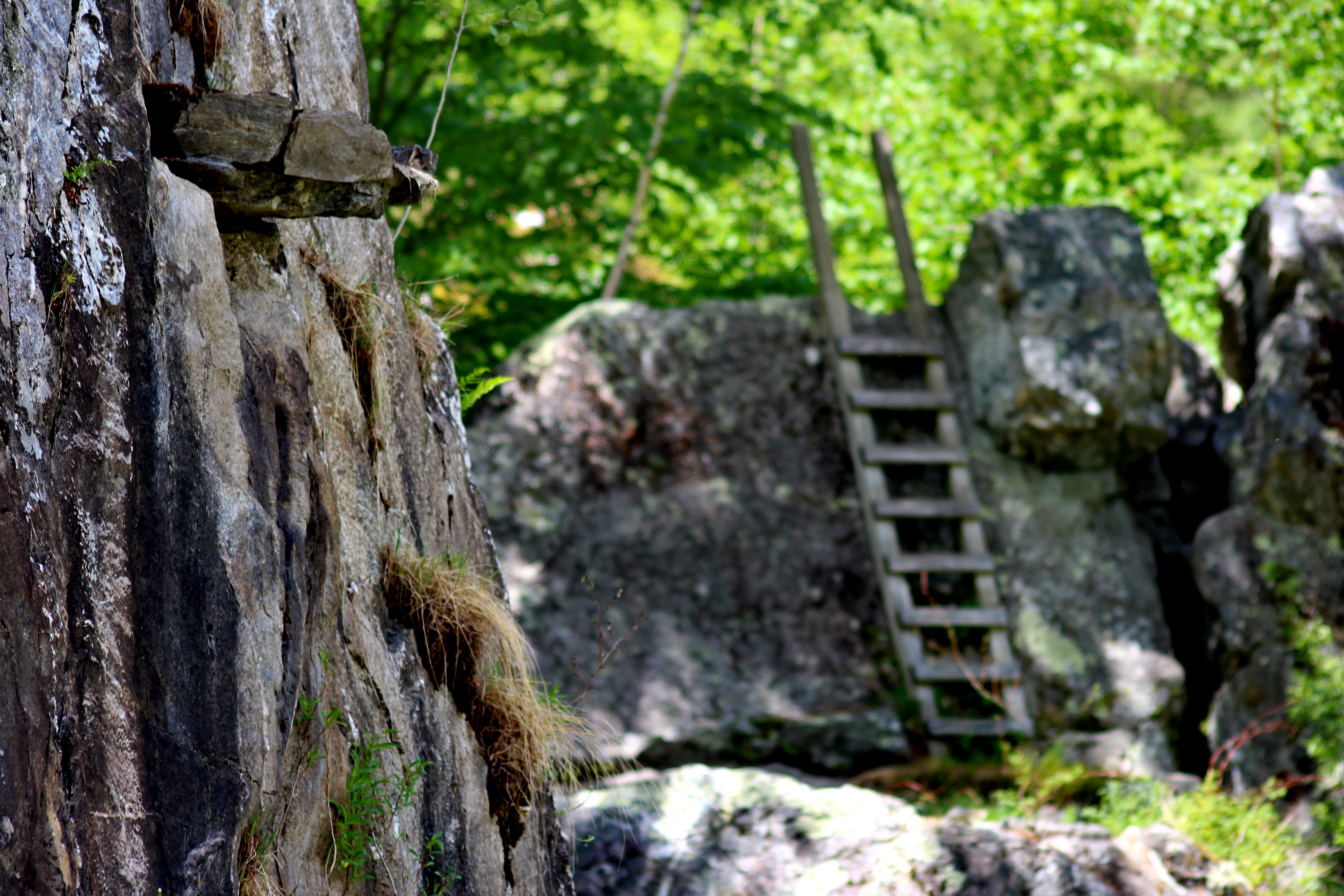 In the distance, a wooden ladder,