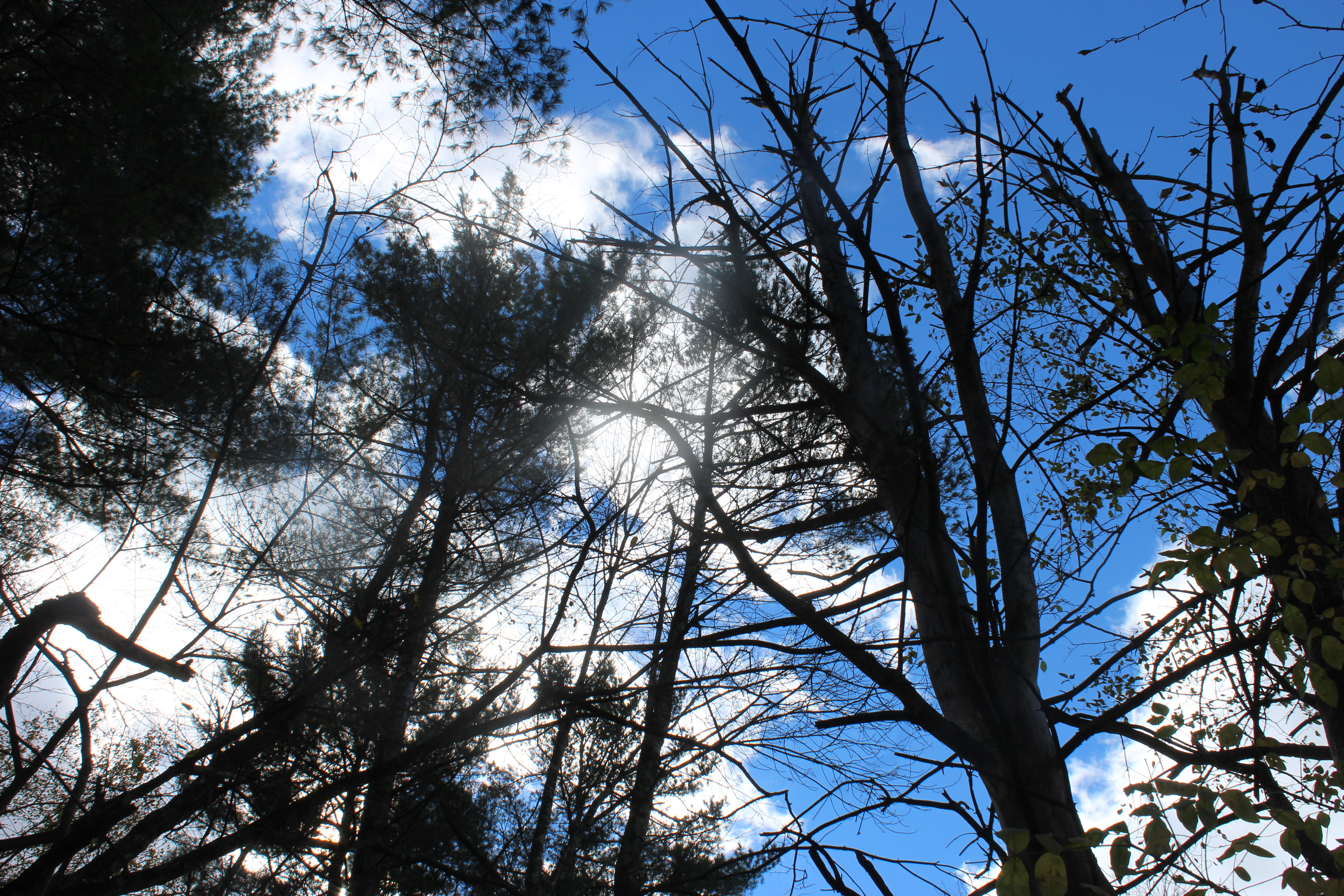 laying down, looking up, beyond the dry winter limbs