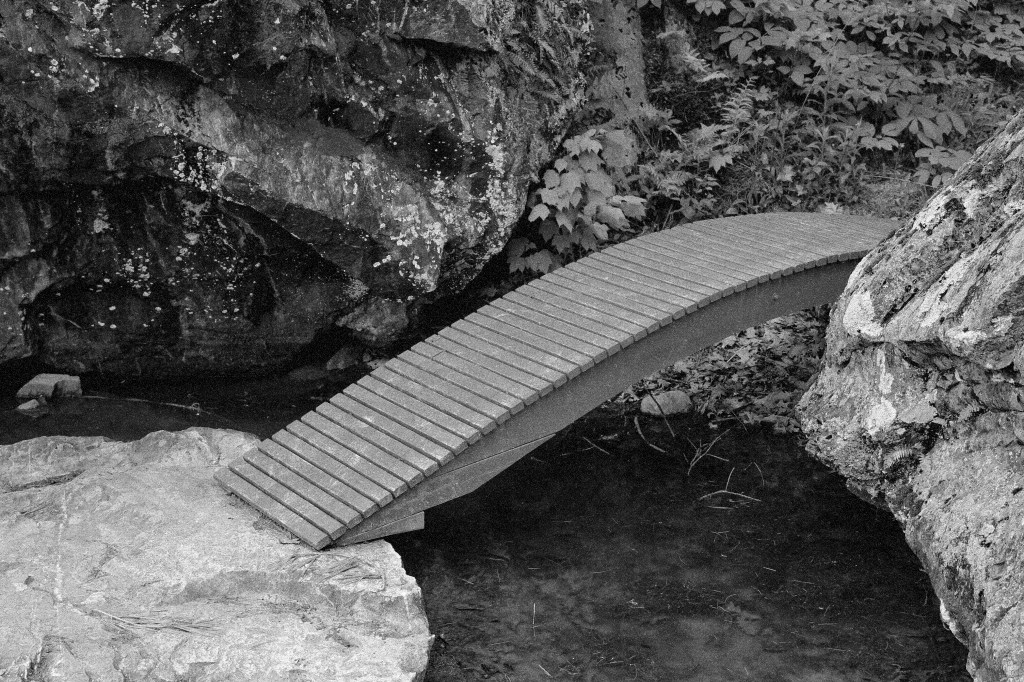 Certain times, or experiences, or people serve as bridges in our life, sometimes taking us to someplace new, sometimes taking us further in the world we are already in. Only the crossing tells us which. There is a small Japanese garden in the midst of the park where I love to go, sit, and meditate.