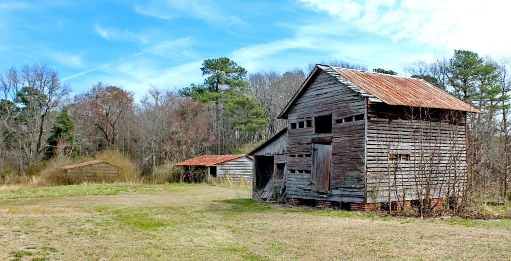 The picture really is of what was my Grandfather’s farm, taken about a month ago. The two buildings really were the corn crib and the sow barn. And there once was a magnificent old barn, now burnt to the ground. I cried the day it burnt down.