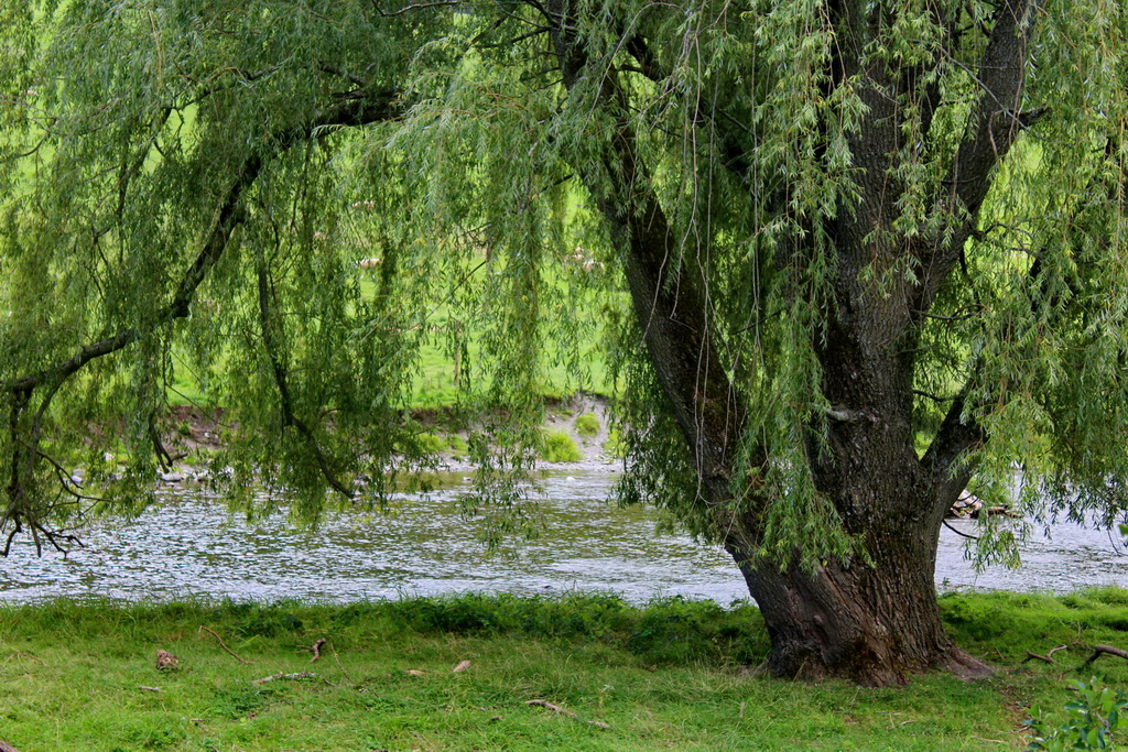 The willow is one of six that dot the edge of the creek.