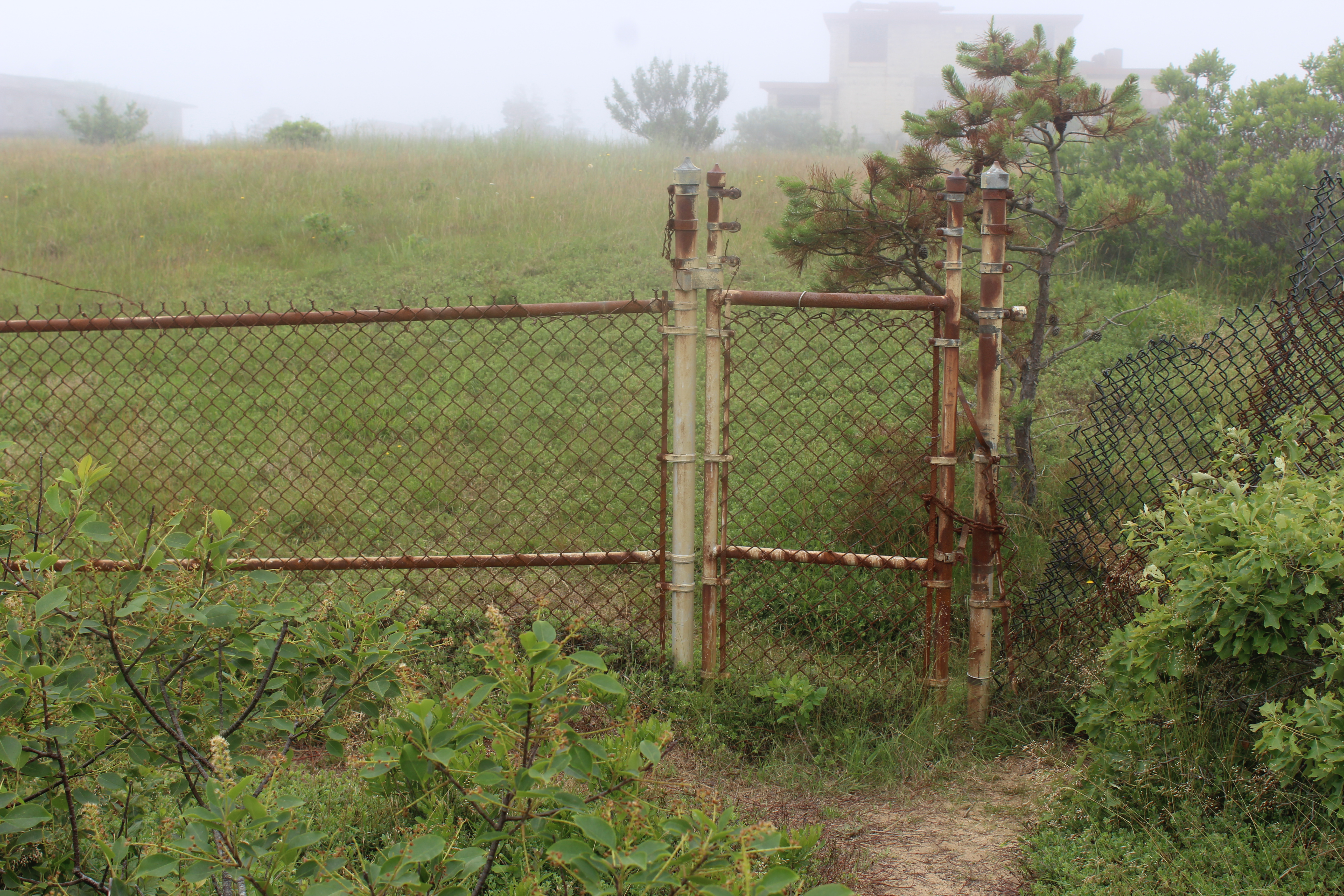 The picture is taken on the outskirts of an abandoned Air Force base that yes, I wandered through on a foggy summer’s morning. This is where I got in.
