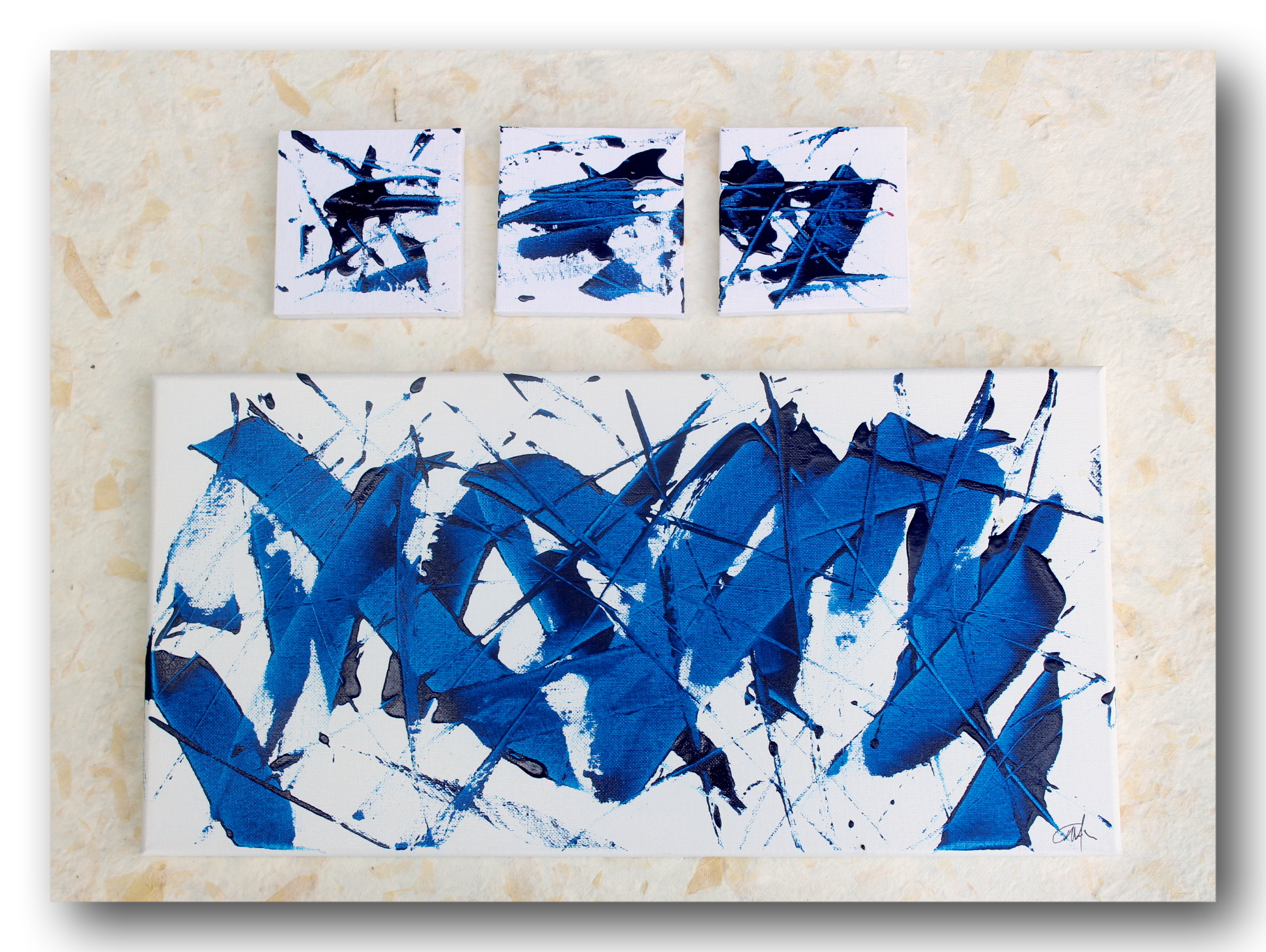 Shards of blue paint.
