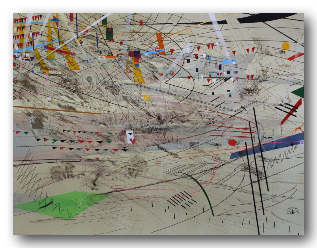 This first picture is “Stadia III” by Julia Mehertu, who I was unaware of. About this painting, which is roughly 6-7′ high, she says “I am interested in describing this as a system… a whole cosmos, while the little minute detail marks act as characters, individual stories.”