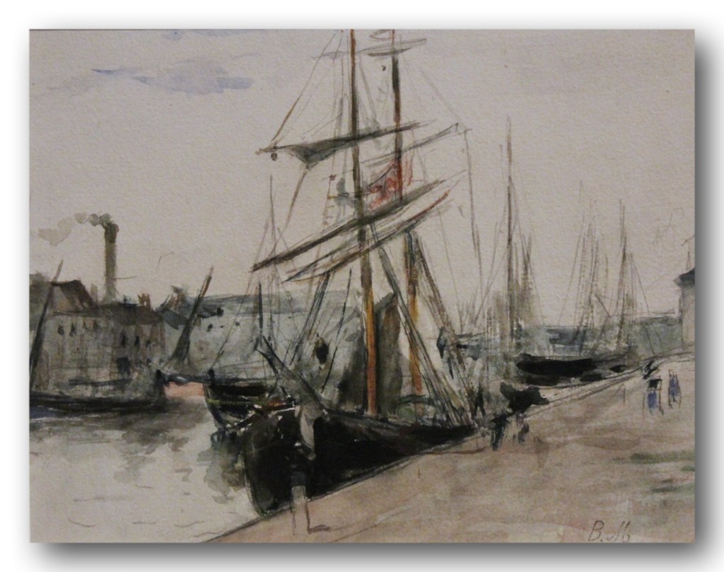 And another seafaring piece. “The Harbour of Cherbourg”, graphite and and watercolor on paper by Berthe Morisot. 1871. This enchanting little work, maybe five inches across was my favorite painting in the whole museum.