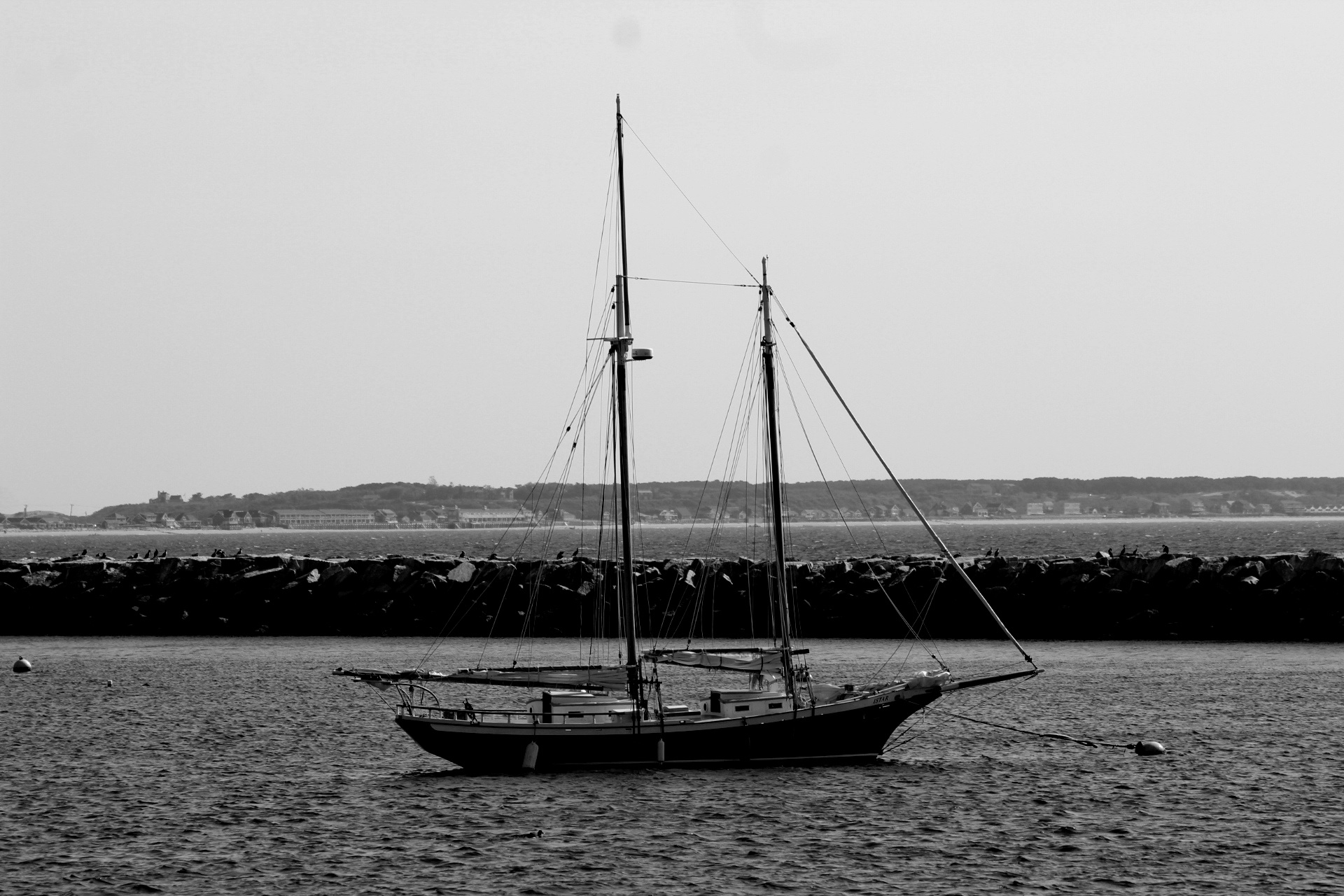 First, lower the sails. Stop. Drop anchor